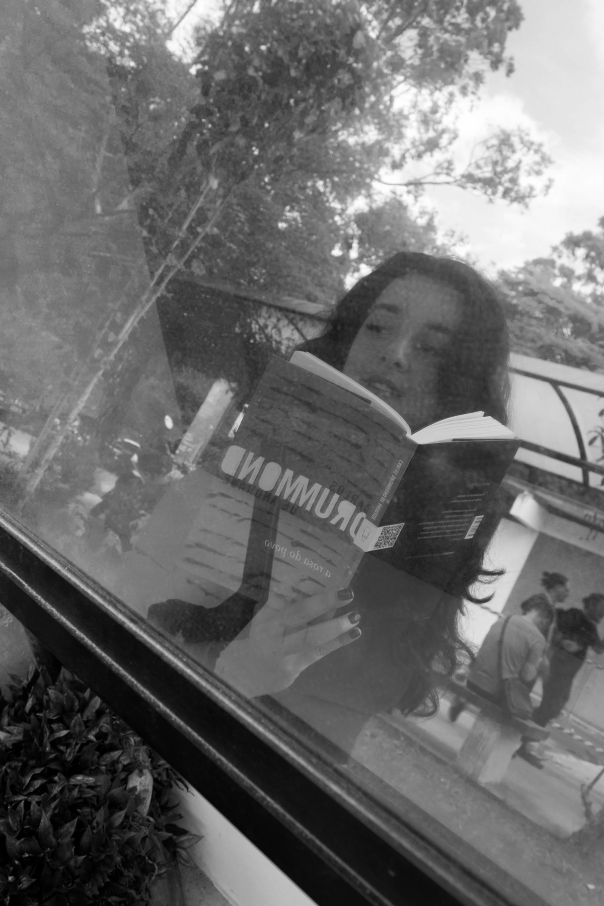 Fizemos este ensaio literário pensando na carreira em contrução da Mônica como professora de redação e Literatura. A Literatura Brasileira é bastante presente na vida dela, assim como a leitura de pensadoras críticas que construíram a ideia de ensino na qual a Mônica acredita. Ela me disse que amava a natureza e cores frias, além disso, ler fica ainda melhor para ela quando acompanhado de um vinho, por essa razão incorporamos cada um desses detalhes no ensaio.